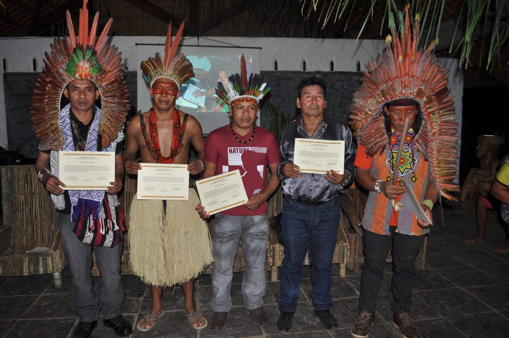 José Marcondes Puyanawa em sua formatura com certificado de conclusão da formação de AAFI