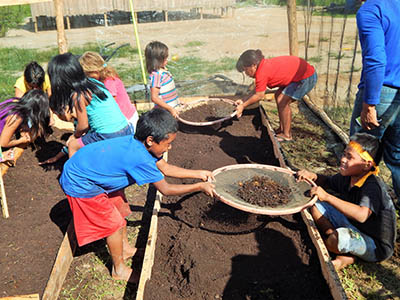 Durante a assessoria, lideranças, professores, artesãs e estudantes desenvolverem atividades no âmbito da formação dos AAFIs, como o diagnóstico dos quintais e demais áreas de produção presentes nas aldeias. A proposta é enriquecer as unidades de produção agroecológica, como também implantar novas áreas. Também ocorreram mutirões de plantio de mudas florestais e frutíferas, além da renovação de viveiros e sementeiras para a produção de mais espécies de interesse local. Em cada aldeia, foram construídas hortas orgânicas.